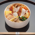だしご飯(米(富山県産)、清酒、食塩、その他)、きんぴら、ローストポーク、鶏の燻製塩麹漬、牛しぐれ煮、玉子焼、里芋煮、筍旨煮、玉ねぎソテー、わさび菜漬け、椎茸旨煮/調味料(アミノ酸等)、ソルビトール、くん液、酸味料、乳酸Ca、香料、リン酸塩(Na)、発色剤(亜硝酸Na)、酒精、pH調整剤、加工でん粉、増粘剤(加工でん粉、増粘多糖類)、(一部に小麦・卵・乳成分・牛肉・ごま・さば・大豆・鶏肉・豚肉を含む)【別添ソース】玉ねぎ(インド産、エジプト産)、醤油、ぶどう糖果糖液糖、水飴、砂糖、食塩、醸造酢、ソテーオニオン、レモン果汁、ワイン、玉ねぎエキス、酵母エキス/酒精、調味料(アミノ酸等)、増粘剤(加工でん粉、増粘多糖類)、(一部に小麦・大豆を含む)