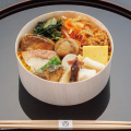 だしご飯(米(富山県産)、清酒、食塩、その他)、鰤照焼、錦糸玉子、きんぴら、玉子焼、里芋煮、赤魚旨煮、鰤のくわ焼き、帆立山椒煮、わさび菜漬け、筍旨煮、鰤しぐれ煮、いか塩焼き、ほたるいか生姜煮、きぬさや/加工でん粉、グリセリン、調味料(アミノ酸等)、ソルビトール、酸味料、香料、乳酸Ca、リン酸塩(Na)、酒精、pH調整剤、甘味料(カンゾウ、ステビア)、増粘剤(加工でん粉)、着色料(カロチノイド、ビタミンB2、カラメル)、(一部に小麦・卵・いか・ごま・さば・大豆を含む)
